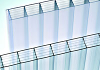Il s’agit d’un « verre synthétique » 2 fois plus léger et surtout 250 fois plus résistant que le verre minéral (à épaisseur égale). Grace à ses qualités de résistance aux chocs, au poids, et aux intempéries (vent, neige, grêle) et températures extrêmes (-40°C à + 120°C), il est devenu le revêtement le plus utilisé pour les abris de piscine. Le polycarbonate alvéolaire, qui comme un double (voire triple) vitrage offre une excellente isolation thermique est utilisé en toiture sur les abris hauts et recouvre souvent presque intégralement les abris bas, alors que le polycarbonate « plein » est utilisé sur les parois verticales. L’intérêt du polycarbonate réside dans sa très bonne transmission de l’énergie calorifique du rayonnement solaire ce qui permet donc de chauffer le volume d’air et l’eau de la piscine à l’intérieur de l’abri, mais également dans son filtre anti U.V (sur 1 ou 2 faces) qui permet notamment de « bloquer » le phénomène de photosynthèse responsable du développement des algues dans l’eau de piscine, mais aussi de protéger le liner de la décoloration et du vieillissement. Sont également parfois utilisées d’autres variantes de verres synthétiques telles que polymétacrylate (Plexiglas) ou plus rarement le PVC.